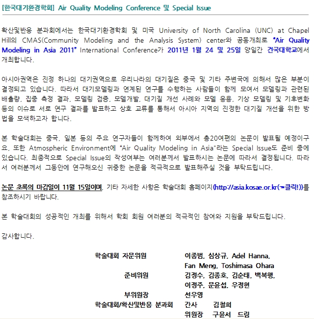 [È®»ê]Air Quality Modeling Conference ¹× Special Issue